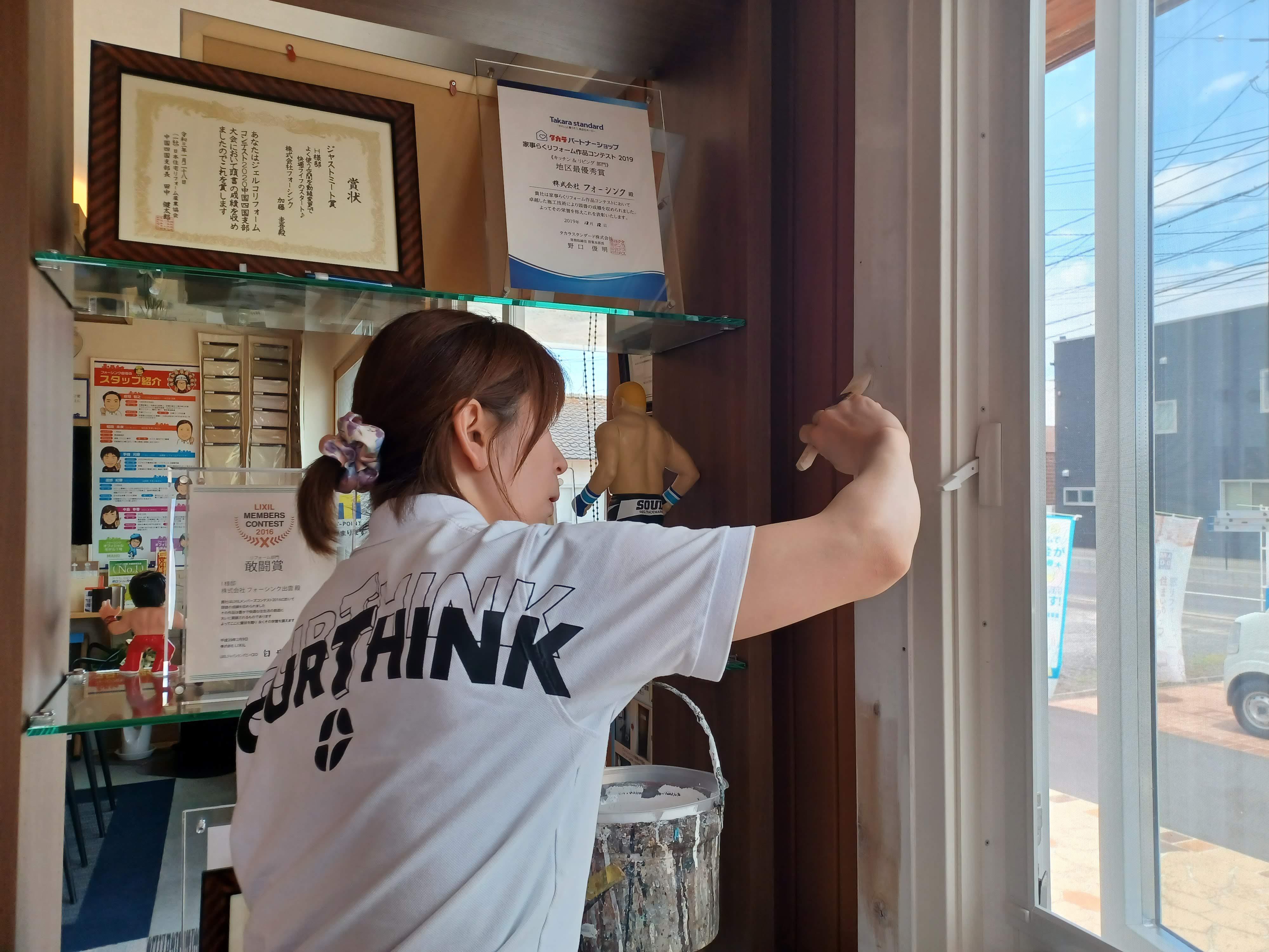 今日はその仕上げの塗装を、一級塗装技能士毛利店長が施工!