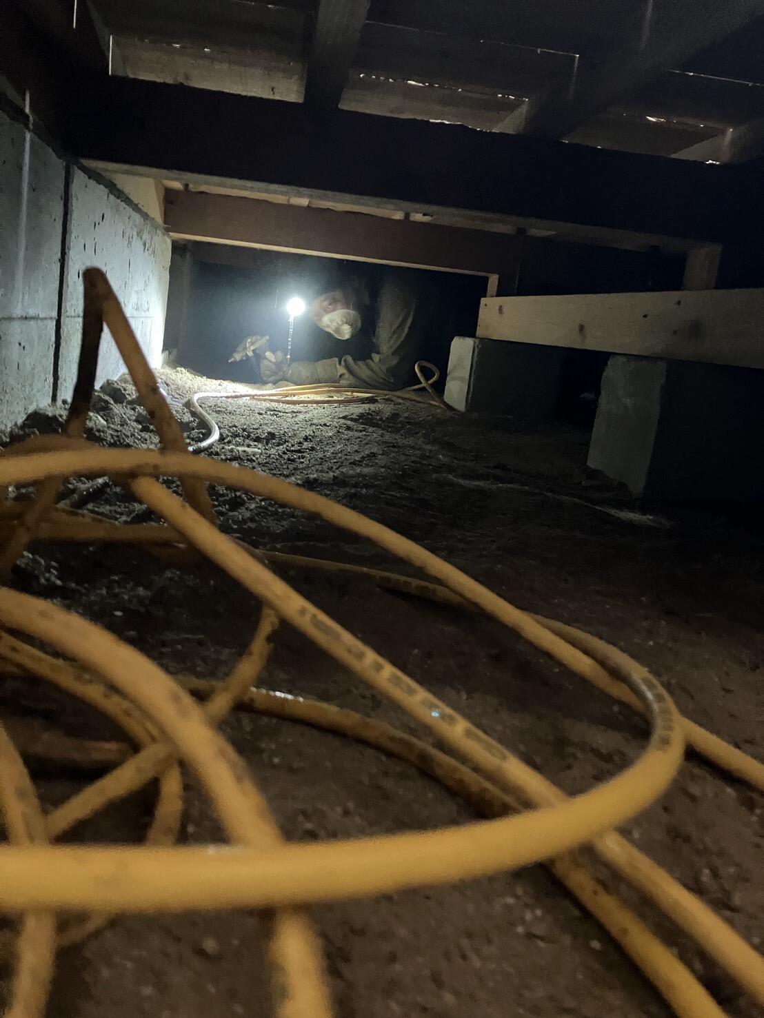先日、防蟻処理(シロアリ対策)の為、角店長が床下へ潜り作業致しました☆