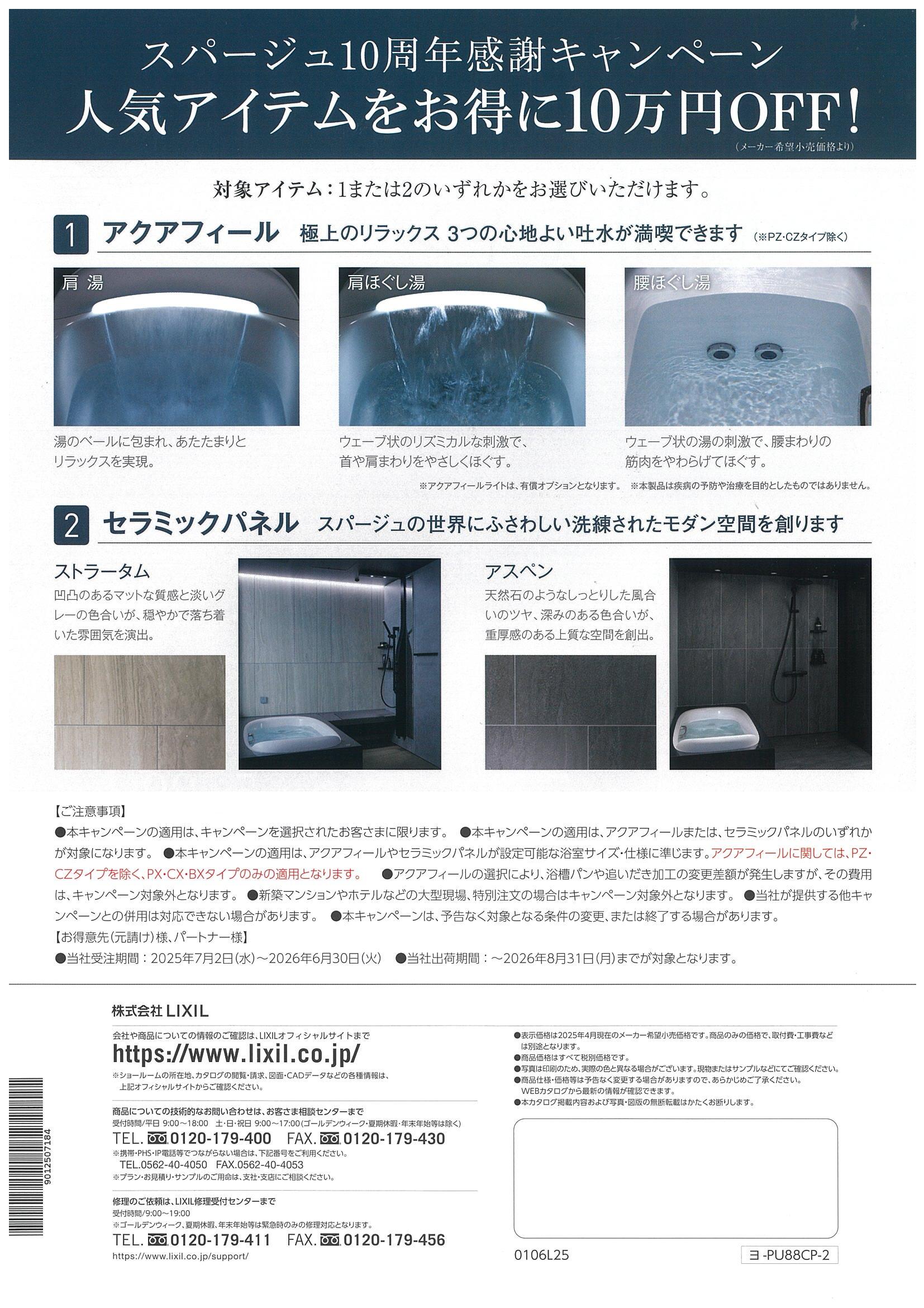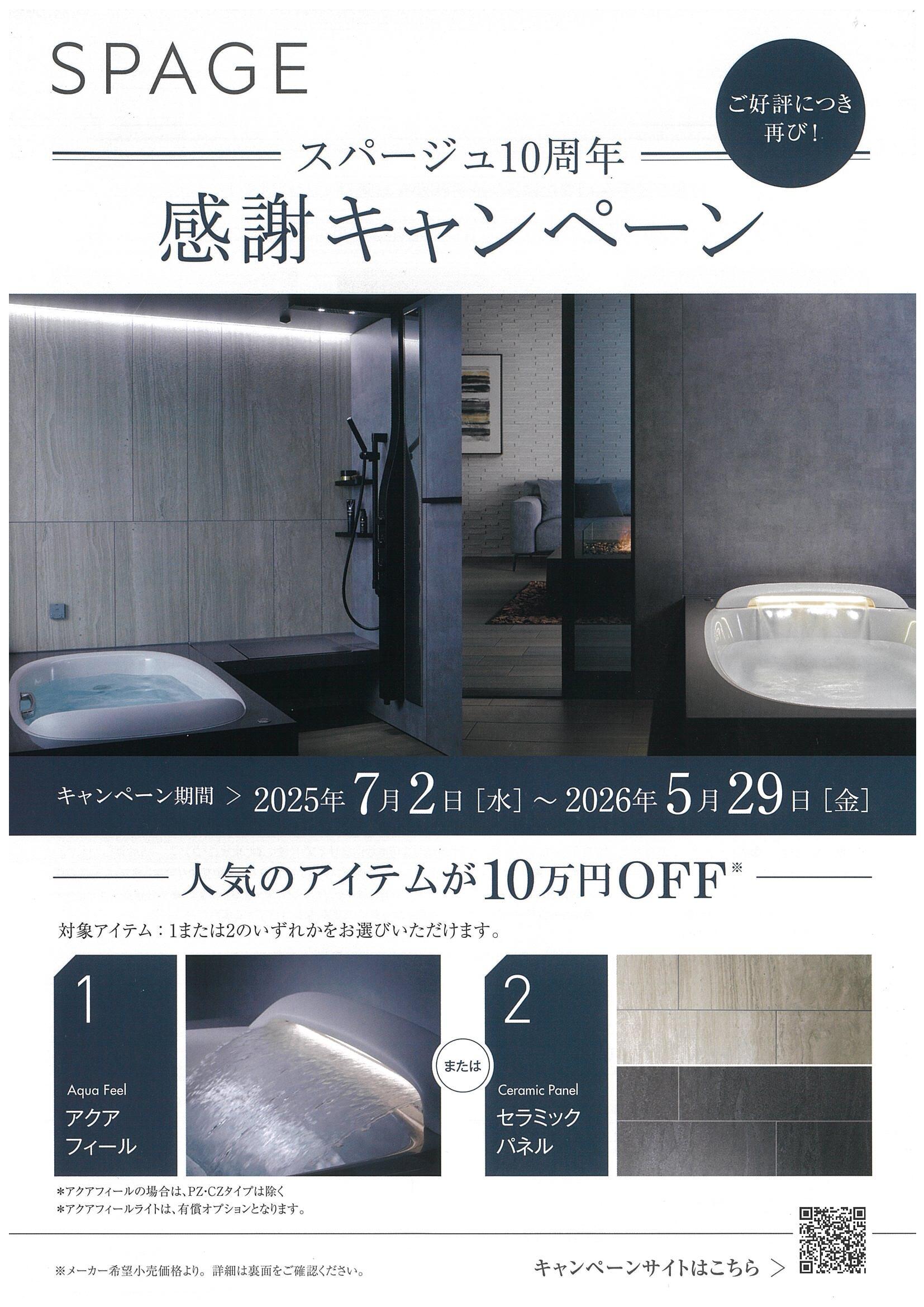 - LIXILシステムバス「スパージュ」が10周年を迎えました!感謝キャンペーン開催です!