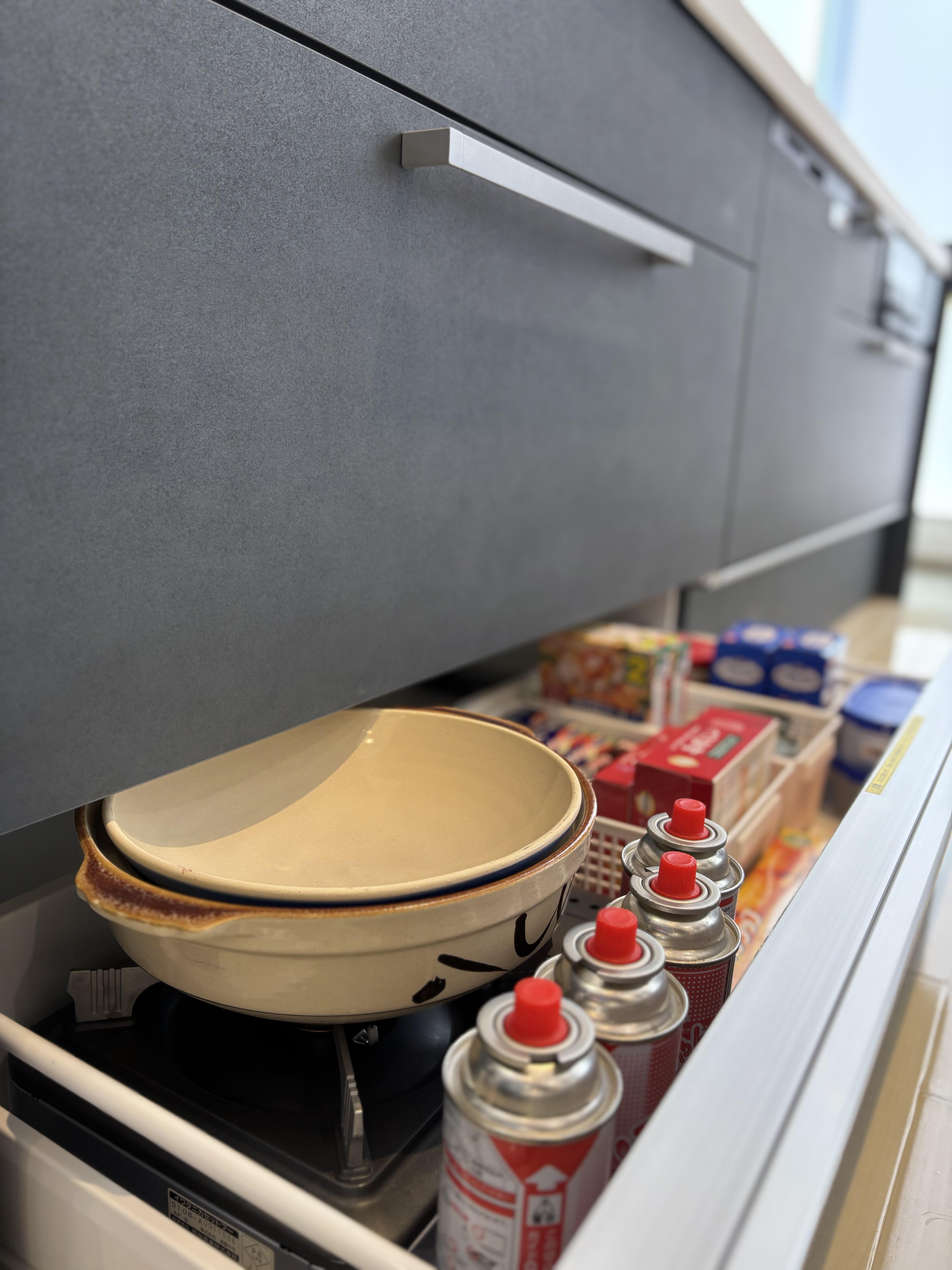 土鍋がカセットコンロに乗せたまま収納可!!!