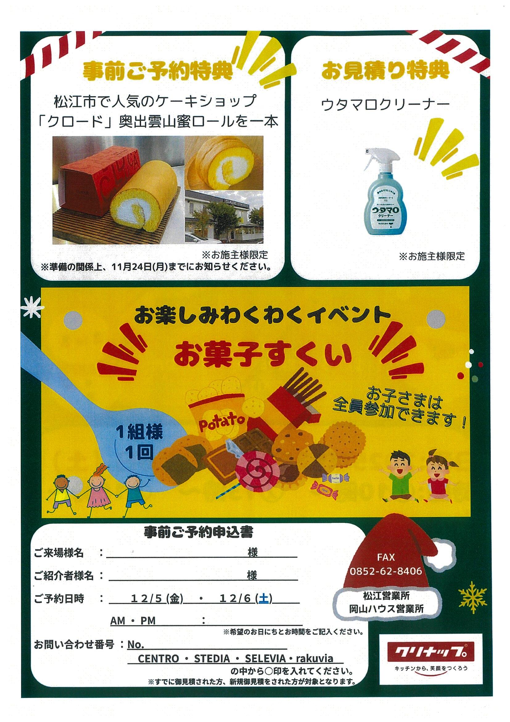 - クリナップ松江ショールームにてイベント開催です!12月5日・6日
