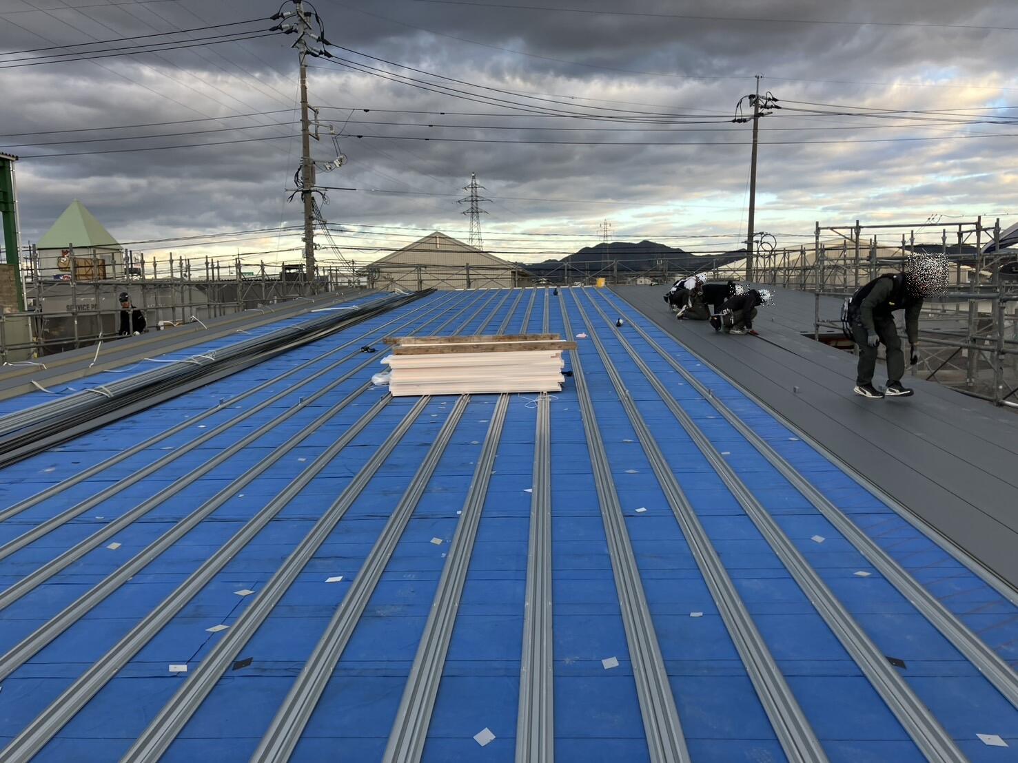 フォーシンク新社屋建設の屋根工事の様子です!