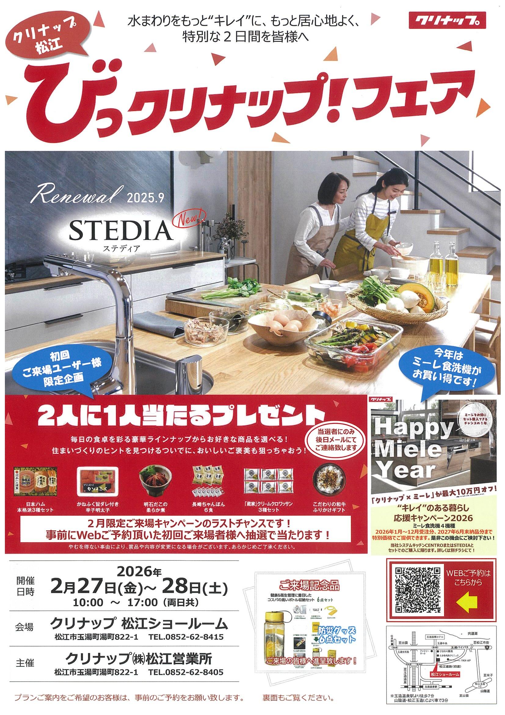 - 松江ショールームクリナップフェア開催のお知らせです♪